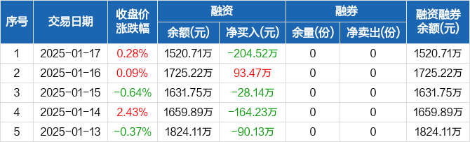 A50ETF基金:融资净偿还204.52万元,融资余额1520.71万元(01-17)