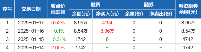 A500ETF基金:融资净买入4154元,融资余额8.95万元(01-17)