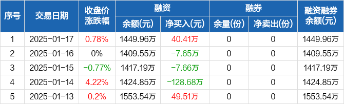 新能源车ETF:融资净买入40.41万元,融资余额1449.96万元(01-17)