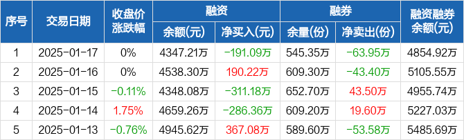 电力ETF:融资净偿还191.09万元,融资余额4347.21万元(01-17)