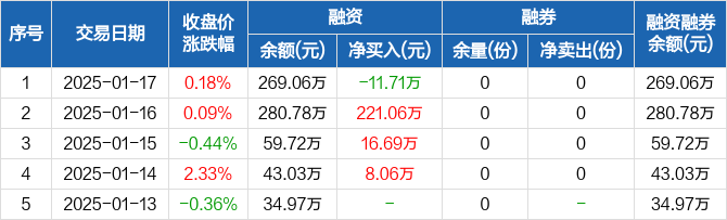 沪深300ETF基金:融资净偿还11.71万元,融资余额269.06万元(01-17)