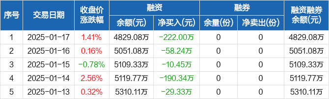 农业ETF:连续5日融资净偿还累计510.36万元(01-17)