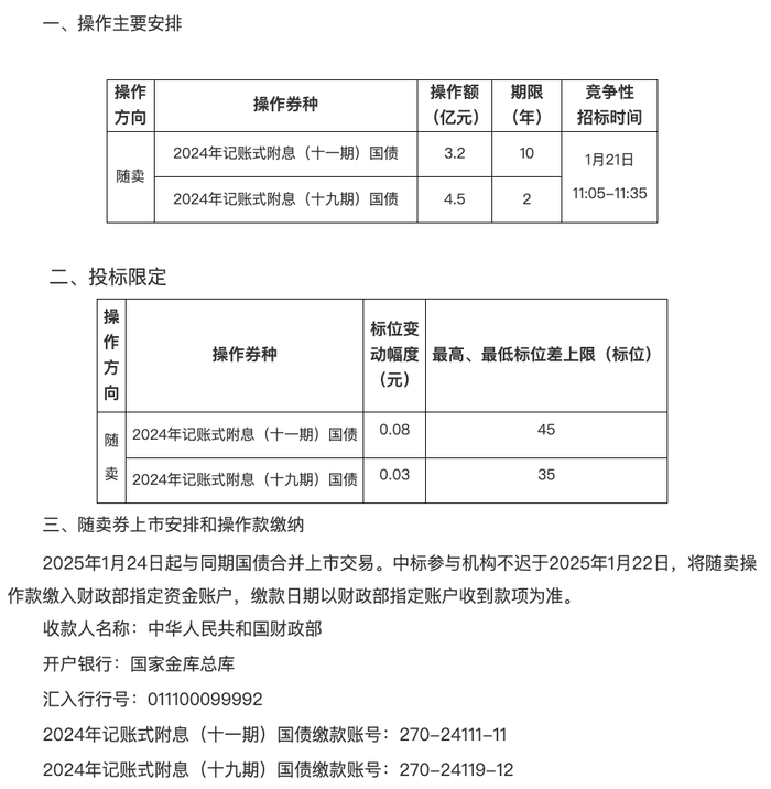 财政部发布关于开展2025年1月份国债做市支持操作有关事宜的通知,为支持国债做市,提高国债二级市场流动性,健全反映市场供求关系的国债收益率曲线,财政部决定开展国债做市支持操作。