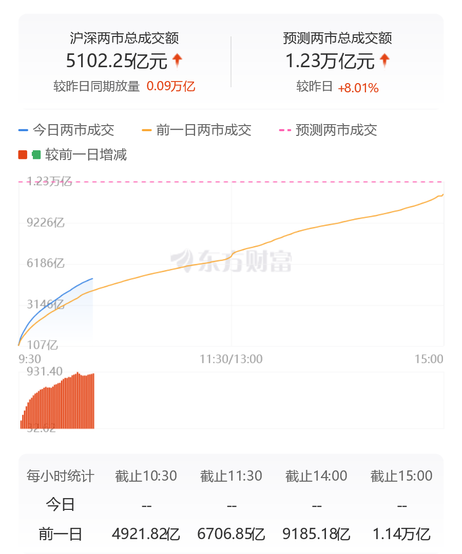沪深两市成交额突破5000亿 较上一日此时放量近900亿