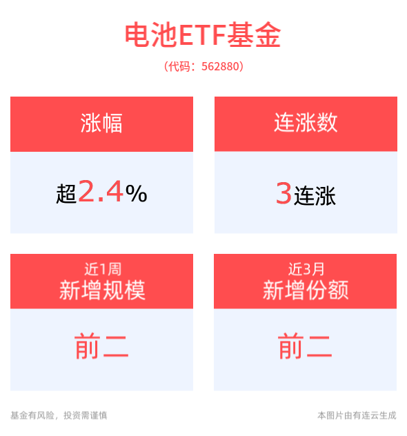 电池ETF基金(562880)上涨2.41%, 冲击3连涨!机构:电池板块涨价预期初步兑现