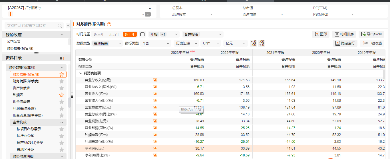 业绩方面,广州银行盈利能力下降较明显。2021-2023年,广州银行实现营业收入分别为165.64亿元、171.53亿元和160.03亿元,增长率分别为11.03%、3.56%和-6.71%,呈波动态势;同期净利润分别为41.01亿元、33.39亿元和30.17亿元,而2020年净利润高达44.55亿元,净利润已呈现“三连降”。