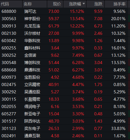高速铜连接概念股开盘大涨,瑞可达、神宇股份、兆龙互连涨超10%,沃尔核材、华脉科技、鑫科材料涨停。