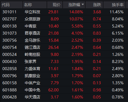 餐饮旅游板块异动拉升,众信旅游直线涨停,中青旅、君亭酒店、金马游乐等跟涨。