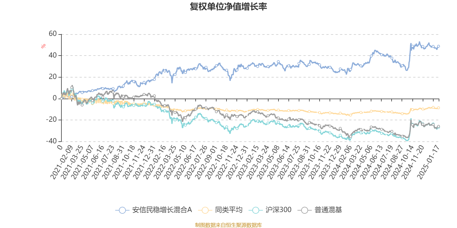截至1月17日,安信民稳增长混合A近三个月复权单位净值增长率为2.06%,位于同类可比基金235/670;近半年复权单位净值增长率为7.45%,位于同类可比基金72/670;近一年复权单位净值增长率为19.51%,位于同类可比基金4/664;近三年复权单位净值增长率为22.49%,位于同类可比基金2/521。