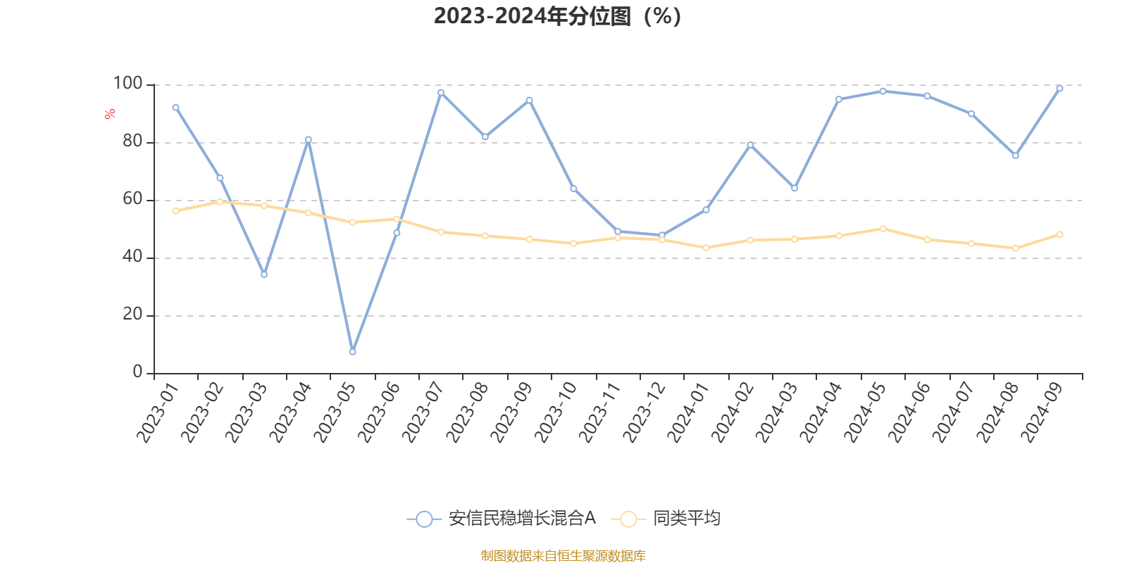 通过所选区间该基金净值增长率分位图,可以观察该基金与同类基金业绩比较情况。图为坐标原点到区间内某时点的净值增长率在同类基金中的分位数。