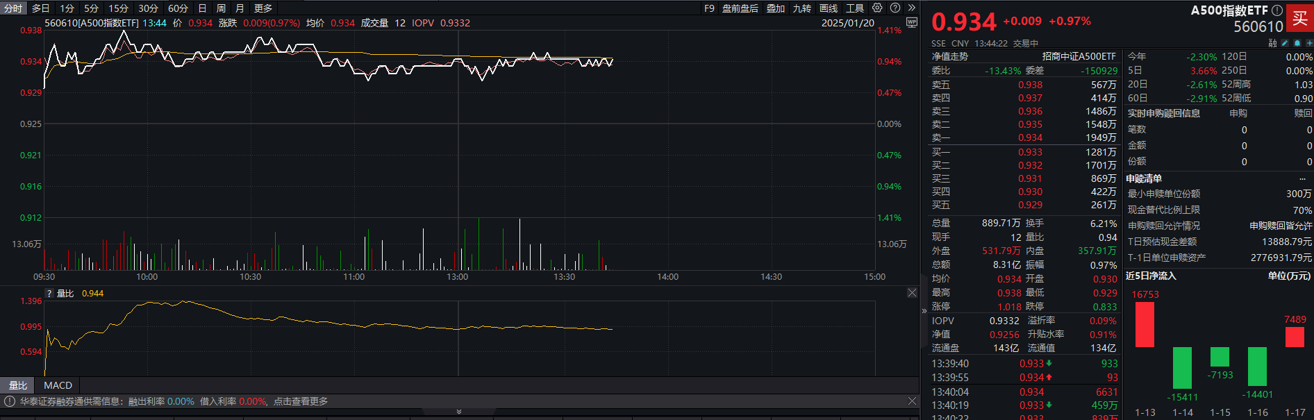 A500指数ETF(560610)紧密跟踪中证A500指数。该指数优选各行业市值代表性强、表征行业龙头的500只股票,兼顾大市值的同时均衡覆盖A股各行业核心龙头资产。同时,指数编制结合互联互通、ESG等筛选条件,便利境内外中长期资金配置A股资产。