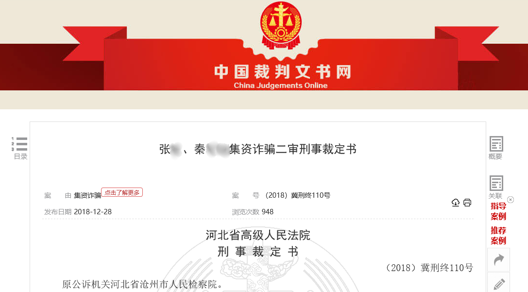 财联社记者在裁判文书网找到的一份“张某、秦某某集资诈骗二审刑事裁定书”,亦明确揭示了河北某地一家企业法人张某,在没有经过国家主管部门批准的情况下,依托其经营的某公司,先是在员工内部推行“员工理财”,2010年后又以兼职员工的名义在社会上进行所谓投资理财或向他人借款,并默认各投资人及他人进行口口相传,承诺给予1.5-2%不等的月息的全过程。