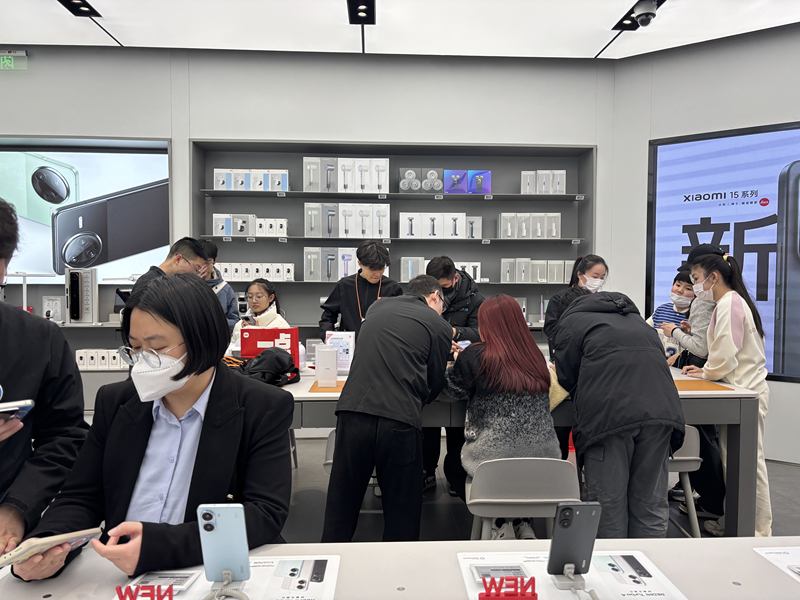 同天,合生汇小米之家的门店的每个展台前都围满了消费者。“今天大家大部分都是为国补来的,之前工作日根本不会有这么多顾客,是之前的一倍左右。”小米之家的销售人员说道。按照国补政策,小米15基础款最高可以减500元,平板、智能手环均可参与补贴,按照八五折享受优惠,但耳机产品并不参与此次国补。