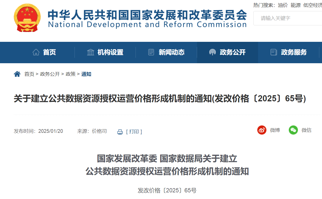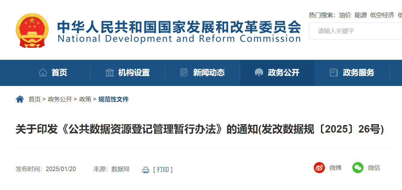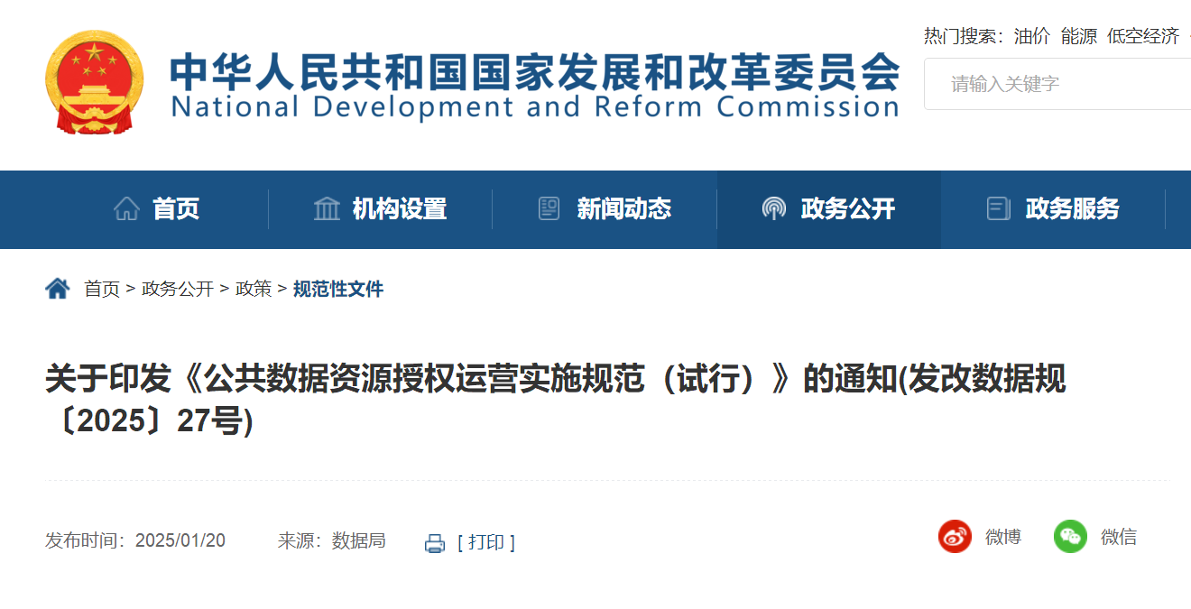 1月20日,国家发展改革委、国家数据局联合对外发布《公共数据资源登记管理暂行办法》《公共数据资源授权运营实施规范(试行)》,以及《关于建立公共数据资源授权运营价格形成机制的通知》(以下分别简称《管理办法》《实施规范》《通知》)三份政策文件。