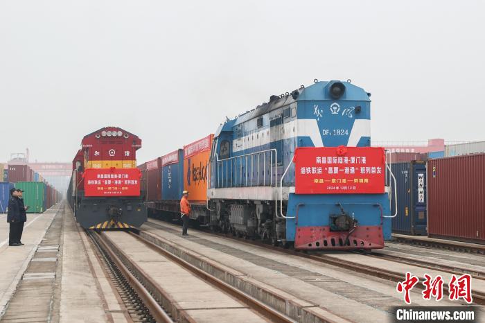 图为南昌国际陆港“昌厦一港通”铁海联运班列首发现场。(资料图) 刘力鑫摄
