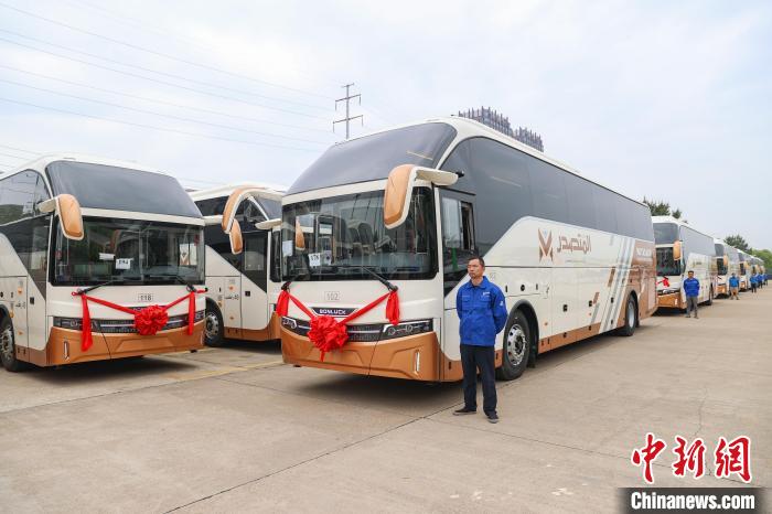 图为江西南昌一客车厂即将发运的出口订单客车。(资料图)刘力鑫摄