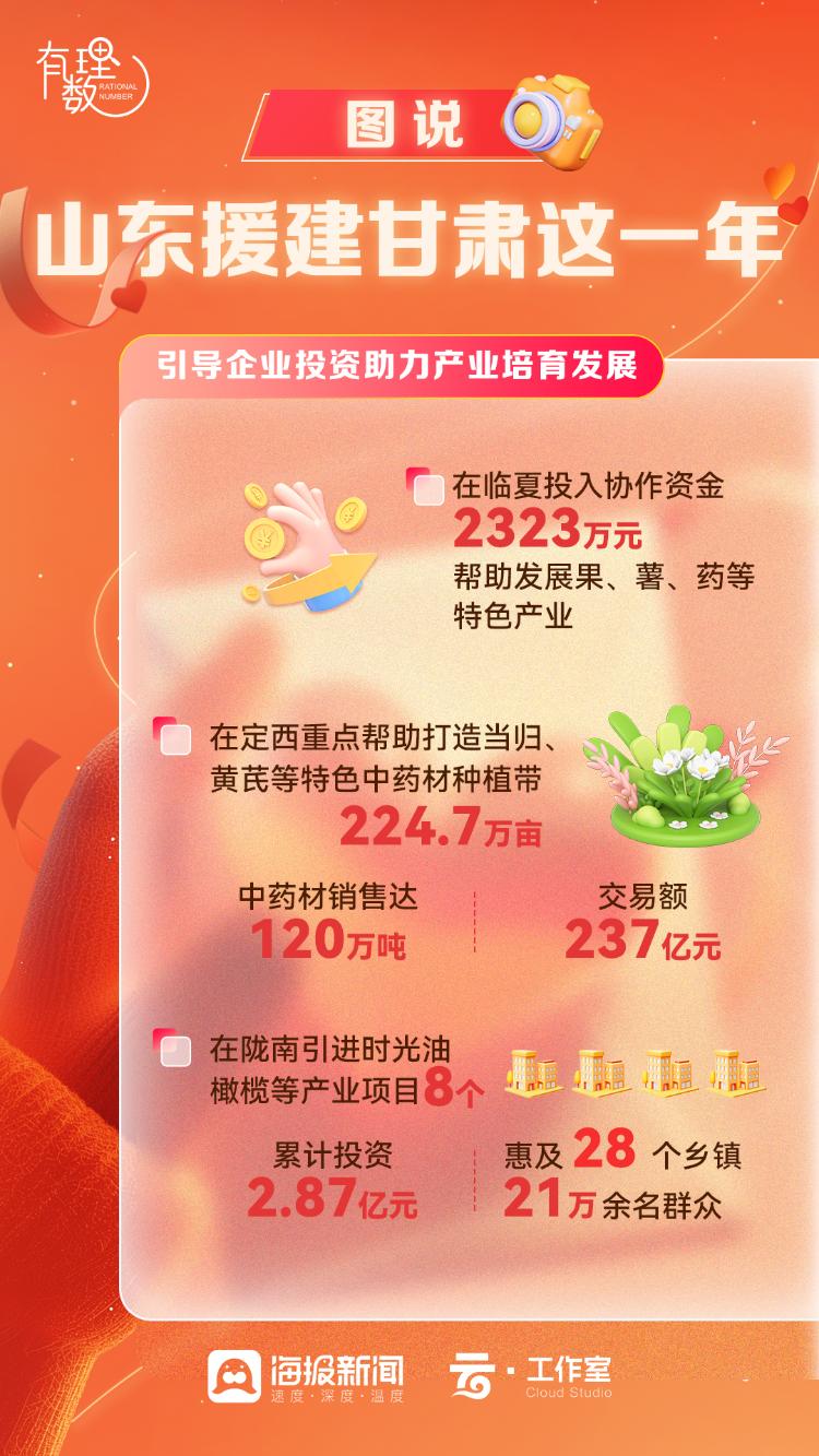 在临夏投入协作资金2323万元,帮助发展果、薯、药等特色产业,形成了规模扩大、品种多元、效益剧增的发展态势。