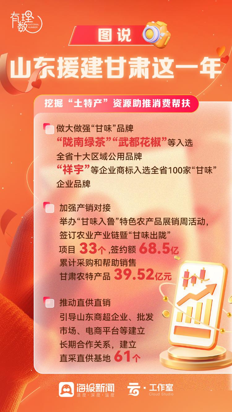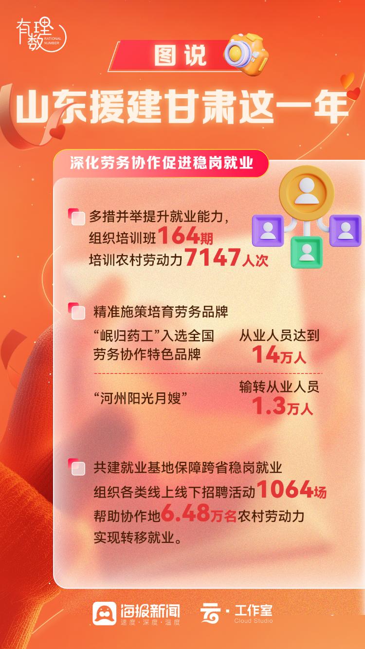 2024年,山东省东西部协作甘肃工作紧盯甘肃所需,财政资金投入16.1亿元,高出协议数29%;帮扶农村劳动力转移就业6.48万人(脱贫劳动力5.38万),是协议数的2.7倍;消费帮扶39.52亿元,是协议数的3.8倍。“万亩马铃薯高产示范协作项目”全面完成“山区示范、引水上山、产量翻番”的目标。