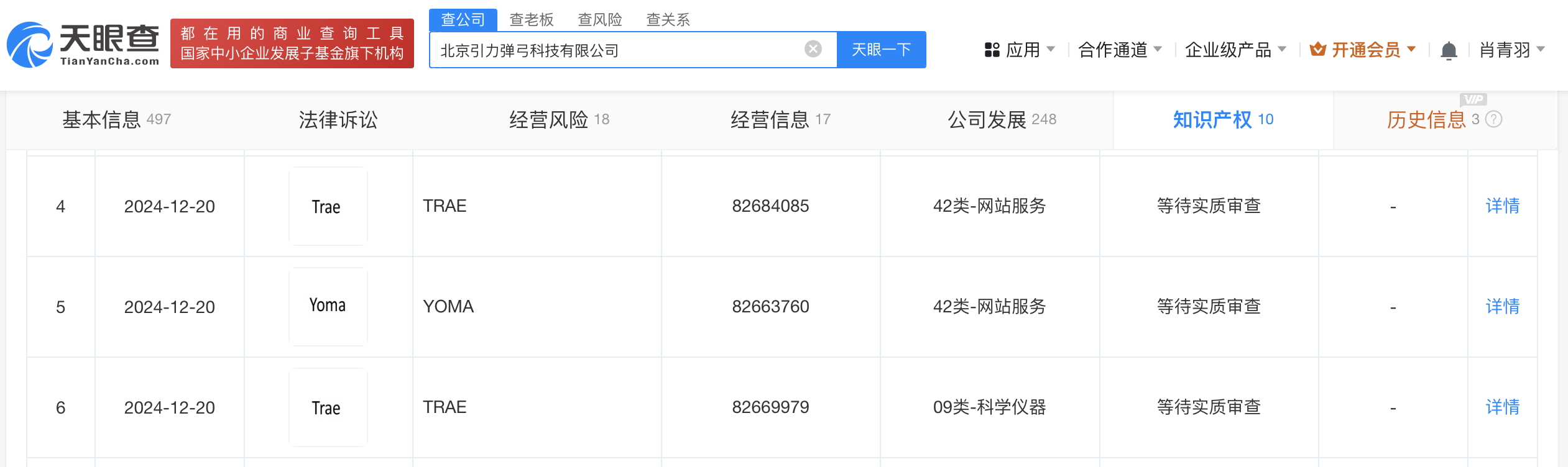 南方财经1月20日电,天眼查知识产权信息显示,近日,北京引力弹弓科技有限公司申请注册两枚“Trae”商标,国际分类为科学仪器、网站服务,当前商标状态均为等待实质审查。北京引力弹弓科技有限公司成立于2024年3月,法定代表人为林蓝东,注册资本100万人民币,由抖音有限公司旗下北京星云创迹科技有限公司全资持股。据悉,Trae为字节跳动推出的面向海外市场的AI编程工具。