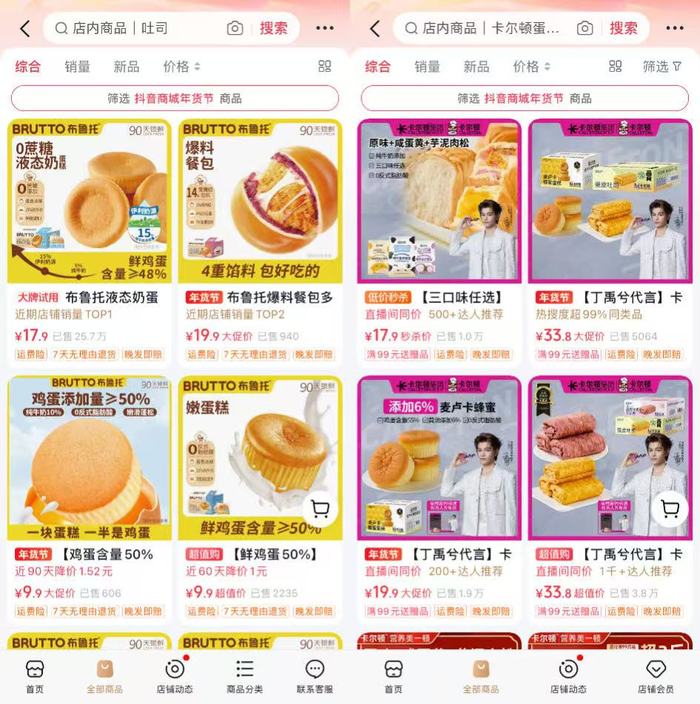 卡尔顿创始人黄秋平在去年接受媒体采访时曾对他做烘焙品的逻辑有过这样一番表述,他认为抖音上的消费者很有可能会通过产品视频、达人直播等形式了解到产品,在推荐契合度下,尝鲜下单,而这可能会为消费者种下心智锚点——当人们在线下再看到该产品,可能也会忍不住下单。事实上,这也十分符合现阶段的布鲁托,社交平台上不少见消费者称它出现在家附近的超市散装区,被人们作为早餐或办公室餐包买回家。