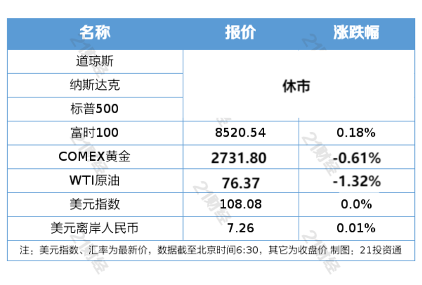 隔夜外盘