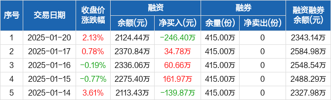 锂电池ETF:融资净偿还246.4万元,融资余额2124.44万元(01-20)