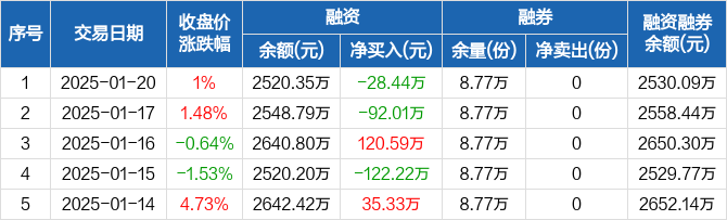电子ETF:融资净偿还28.44万元,融资余额2520.35万元(01-20)