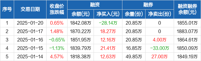 信息技术ETF:融资净偿还28.14万元,融资余额1842.08万元(01-20)