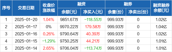 医疗ETF:融资净偿还118.55万元,融资余额9851.67万元(01-20)