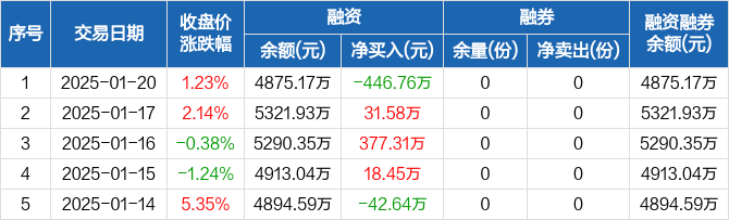 消费电子ETF:融资净偿还446.76万元,融资余额4875.17万元(01-20)