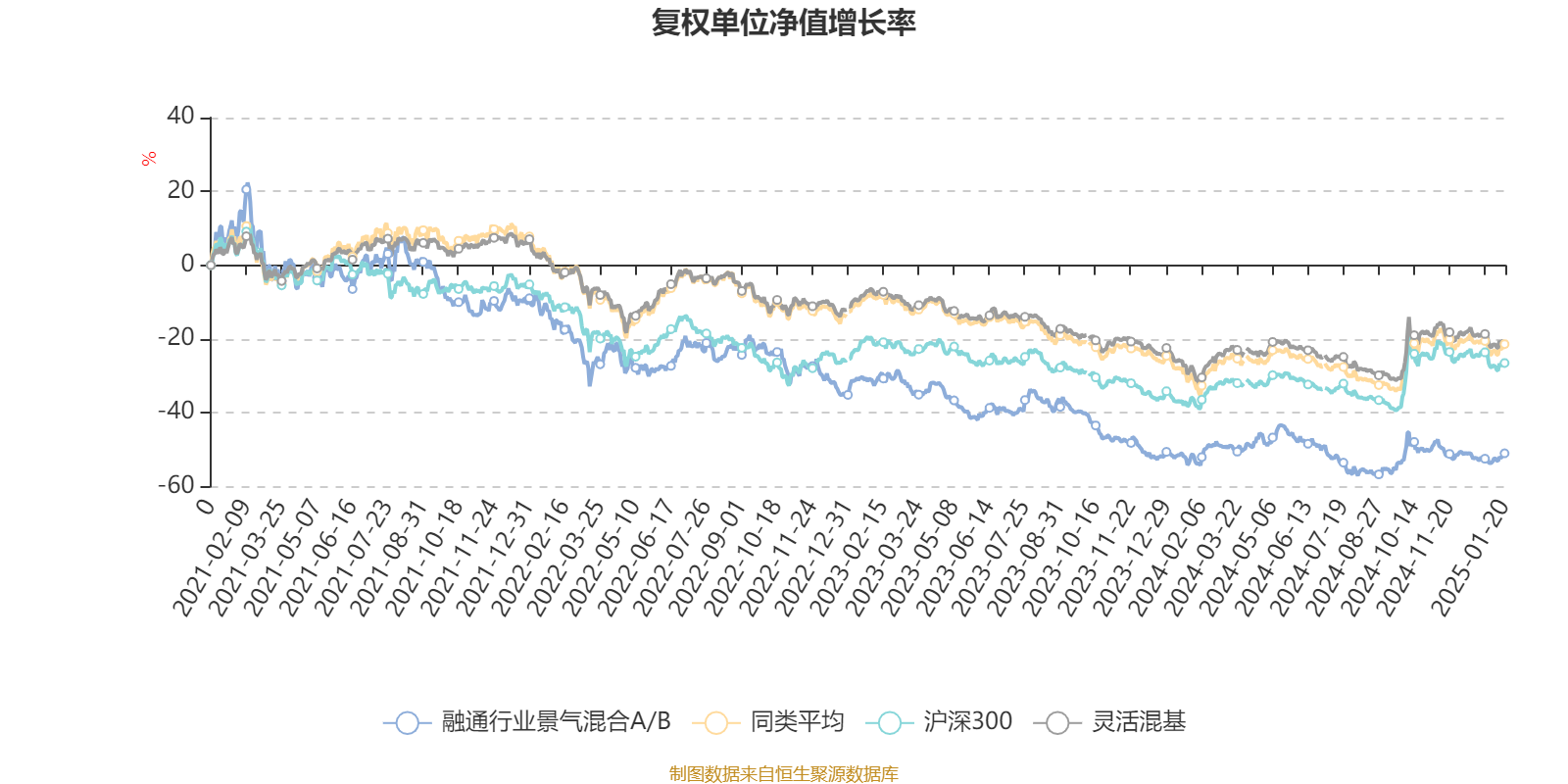 截至1月20日,融通行业景气混合A/B近三个月复权单位净值增长率为-2.64%,位于同类可比基金635/920;近半年复权单位净值增长率为5.44%,位于同类可比基金557/920;近一年复权单位净值增长率为3.11%,位于同类可比基金742/920;近三年复权单位净值增长率为-45.03%,位于同类可比基金847/898。
