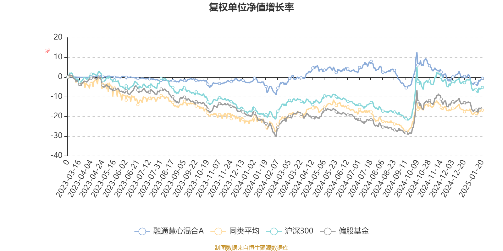 截至1月20日,融通慧心混合A近三个月复权单位净值增长率为-8.46%,位于同类可比基金88/91;近半年复权单位净值增长率为-6.98%,位于同类可比基金81/91;近一年复权单位净值增长率为4.42%,位于同类可比基金68/88。