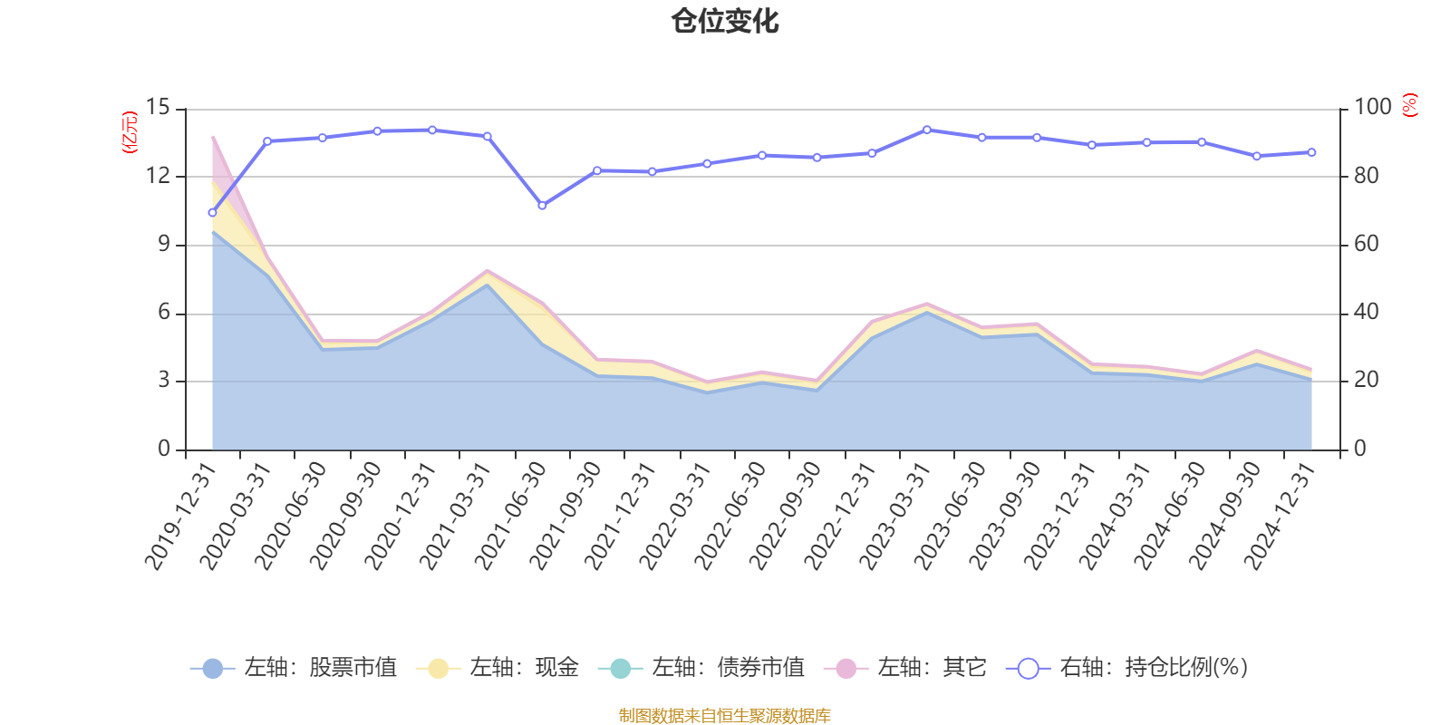 据定期报告数据统计,近三年平均股票仓位为88.58%,同类平均为87.17%。2023年一季度末基金达到93.84%的最高仓位,2019年末最低,为69.57%。