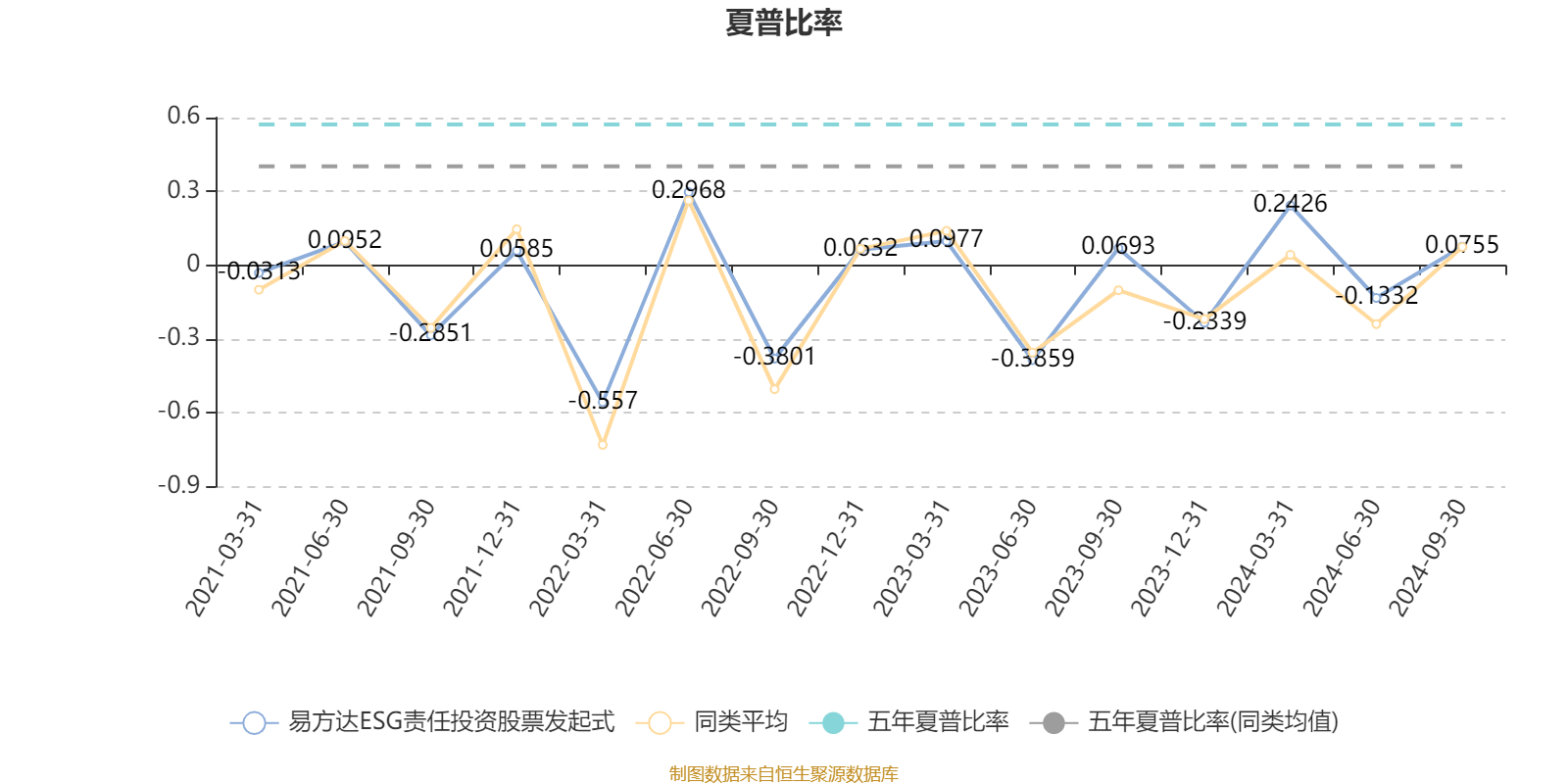 截至9月30日,基金近三年夏普比率为0.1959,位于同类可比基金5/42。