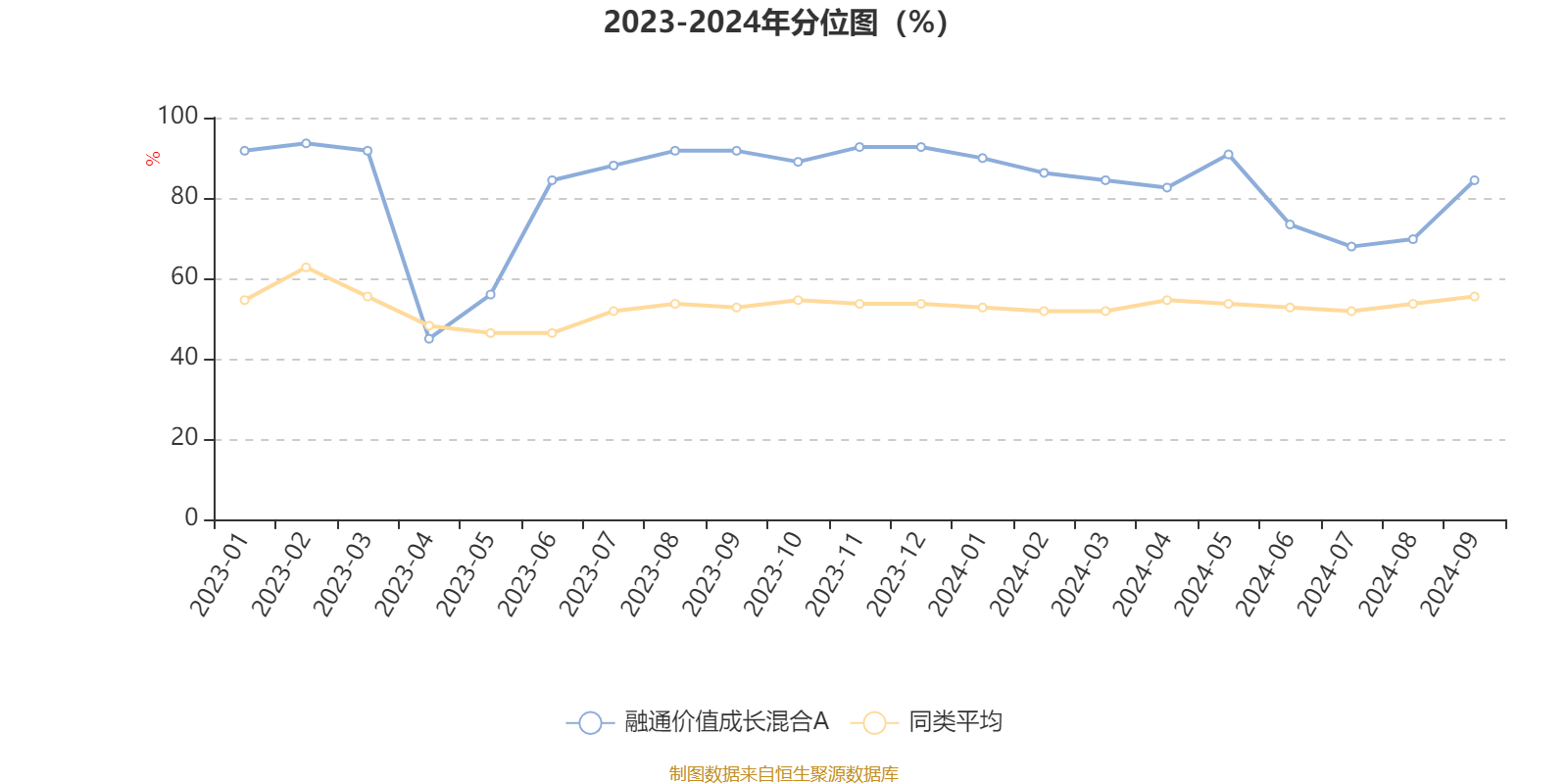通过所选区间该基金净值增长率分位图,可以观察该基金与同类基金业绩比较情况。图为坐标原点到区间内某时点的净值增长率在同类基金中的分位数。