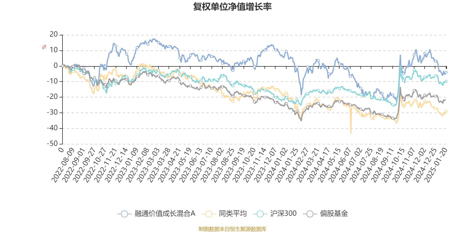 截至1月20日,融通价值成长混合A近三个月复权单位净值增长率为-2.25%,位于同类可比基金9/129;近半年复权单位净值增长率为15.64%,位于同类可比基金4/129;近一年复权单位净值增长率为-5.46%,位于同类可比基金45/127。