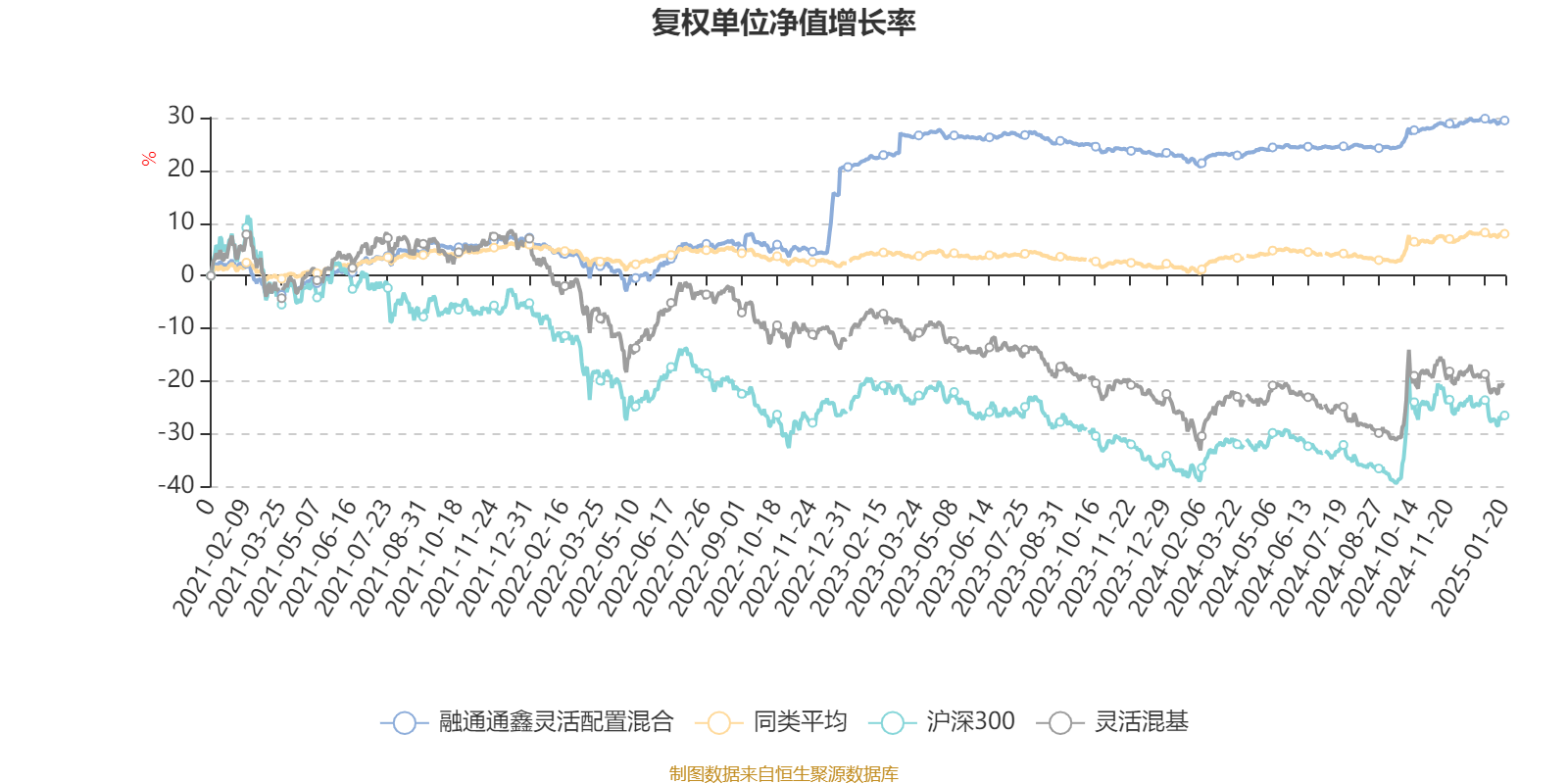 截至1月20日,融通通鑫灵活配置混合近三个月复权单位净值增长率为1.43%,位于同类可比基金63/155;近半年复权单位净值增长率为3.92%,位于同类可比基金56/155;近一年复权单位净值增长率为5.96%,位于同类可比基金95/155;近三年复权单位净值增长率为22.48%,位于同类可比基金2/154。