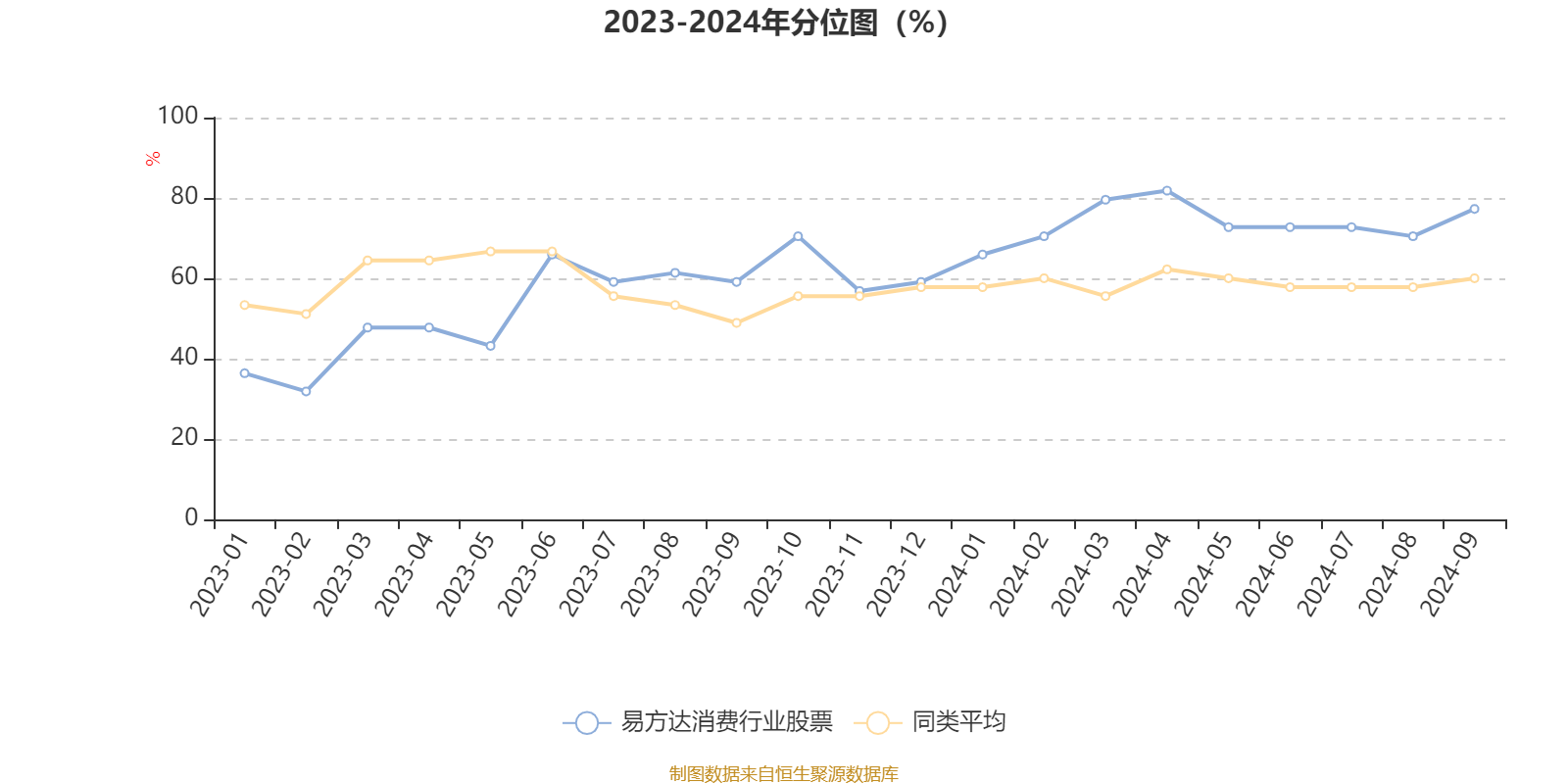 通过所选区间该基金净值增长率分位图,可以观察该基金与同类基金业绩比较情况。图为坐标原点到区间内某时点的净值增长率在同类基金中的分位数。