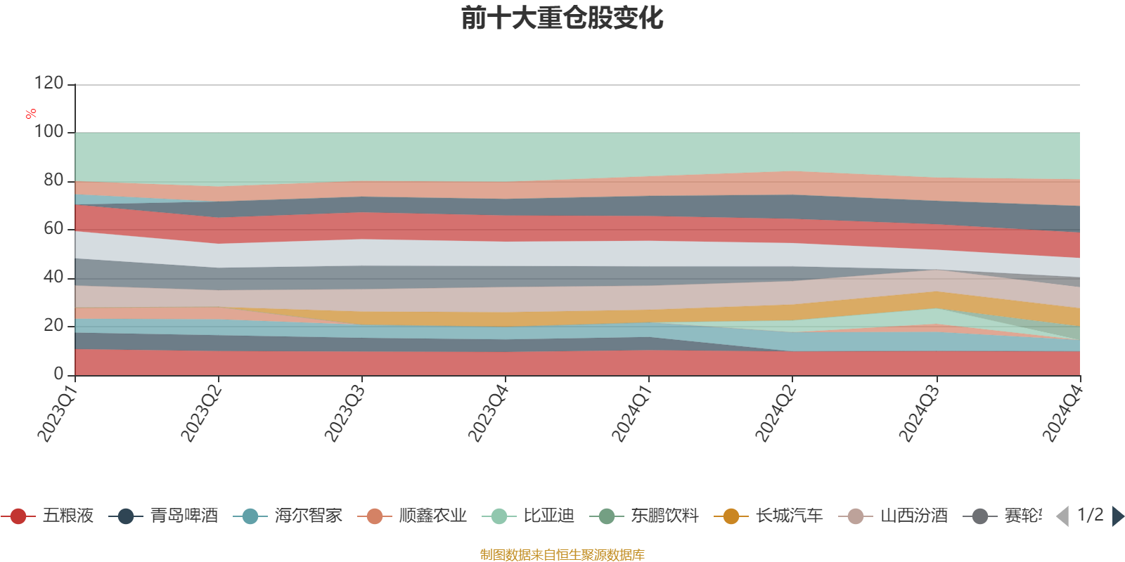 该基金持股集中度较高,且持股标的较为稳定,近2年前十大重仓股集中度长期超过60%。截至2024年四季度末,基金十大重仓股分别是福耀玻璃、美的集团、贵州茅台、五粮液、山西汾酒、古井贡酒、长城汽车、东鹏饮料、海尔智家、赛轮轮胎。