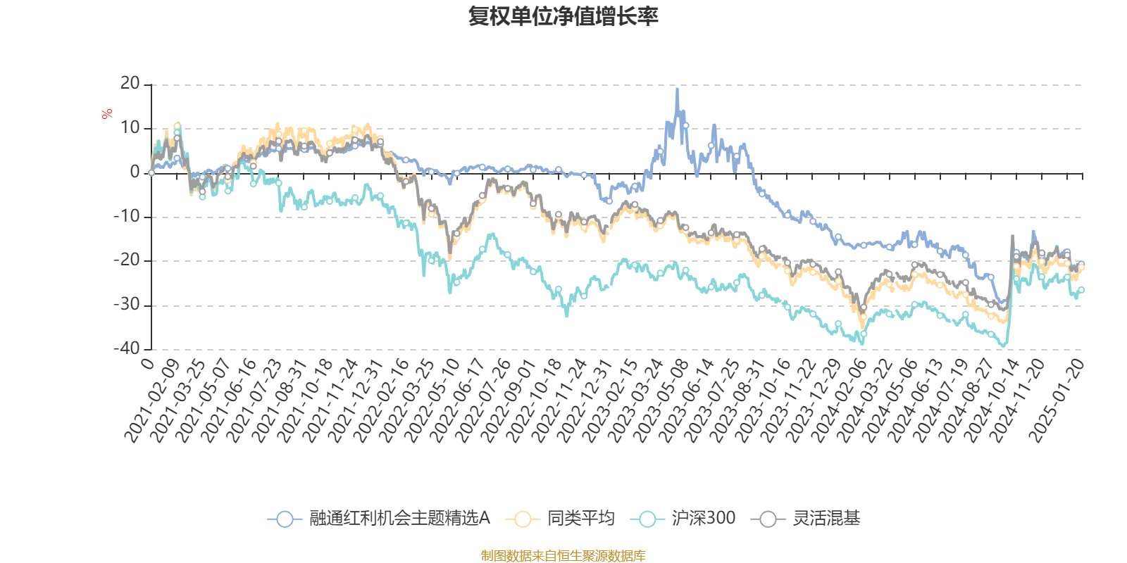 截至1月20日,融通红利机会主题精选A近三个月复权单位净值增长率为-2.41%,位于同类可比基金613/920;近半年复权单位净值增长率为-2.49%,位于同类可比基金846/920;近一年复权单位净值增长率为-4.66%,位于同类可比基金864/920;近三年复权单位净值增长率为-24.00%,位于同类可比基金450/898。
