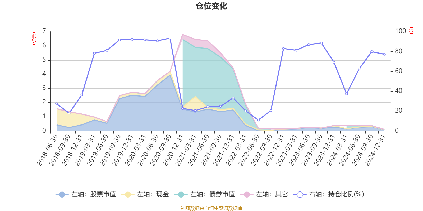 据定期报告数据统计,近三年平均股票仓位为59.8%,同类平均为79.91%。2020年三季度末基金达到93.51%的最高仓位,2022年上半年末最低,为10.98%。