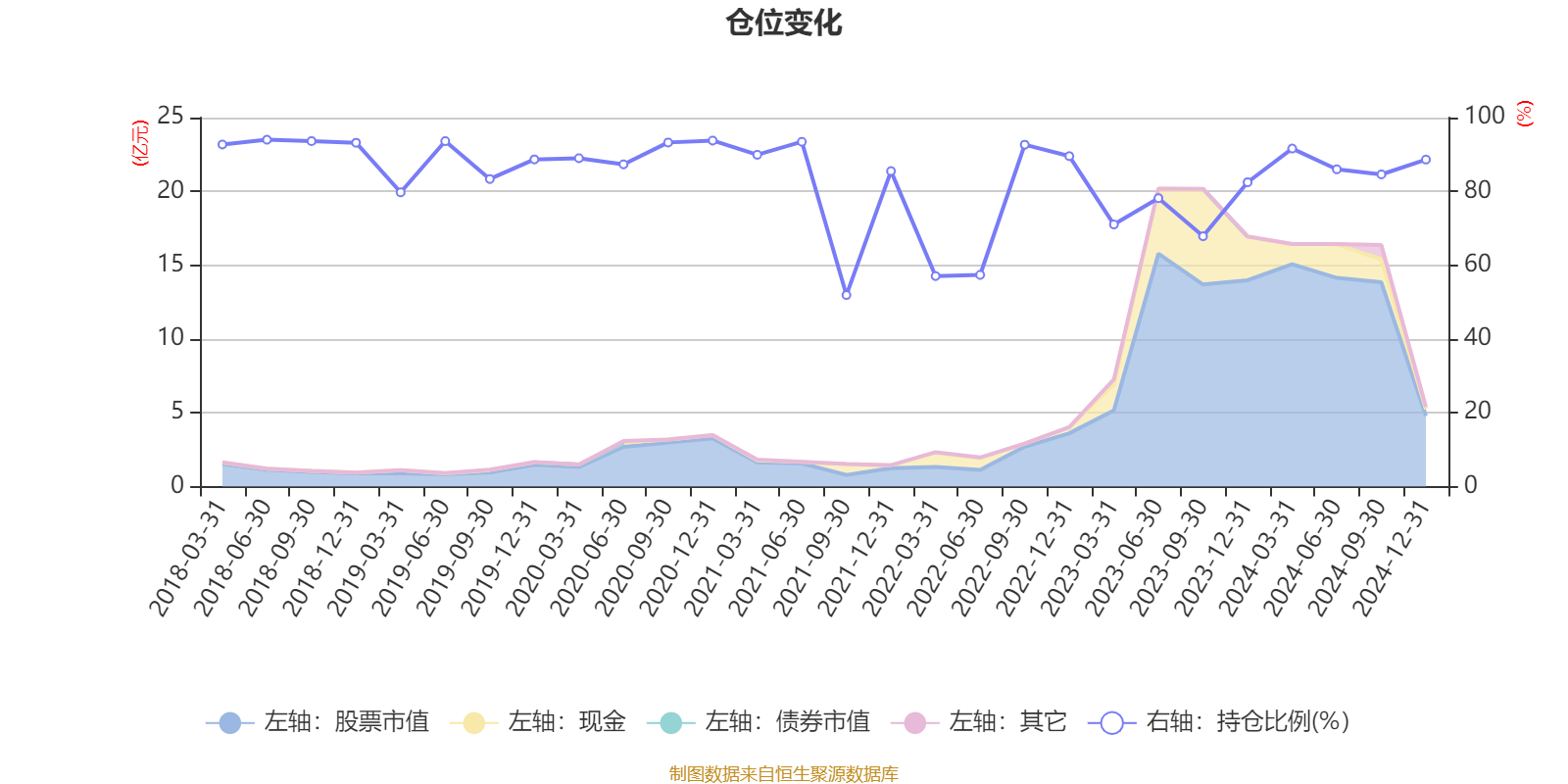 据定期报告数据统计,近三年平均股票仓位为78.92%,同类平均为79.91%。2018年上半年末基金达到94.01%的最高仓位,2021年三季度末最低,为51.91%。