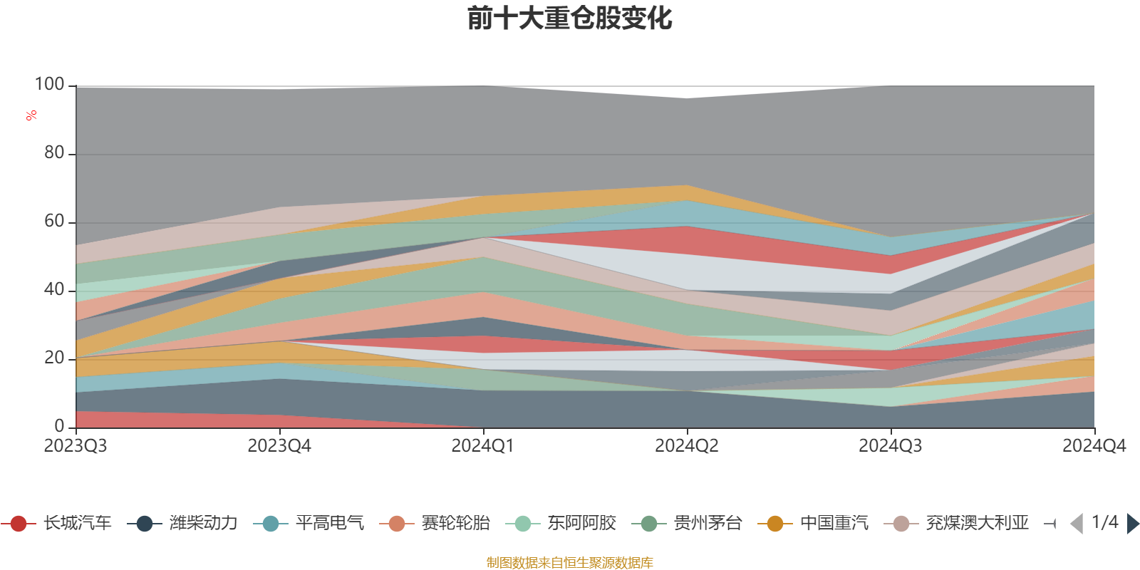 该基金持股集中度较高。截至2024年四季度末,基金十大重仓股分别是潍柴动力、中国海洋石油、长江电力、中船防务、中联重科、中国重汽、赛轮轮胎、宁波银行、中通客车、兖煤澳大利亚。