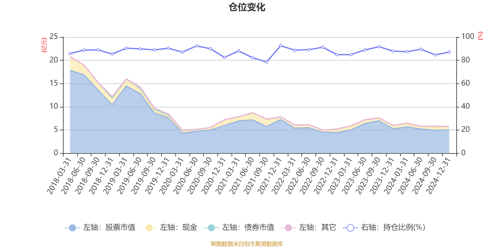 据定期报告数据统计,近三年平均股票仓位为88%,同类平均为79.91%。2021年末基金达到92.57%的最高仓位,2021年三季度末最低,为78.52%。