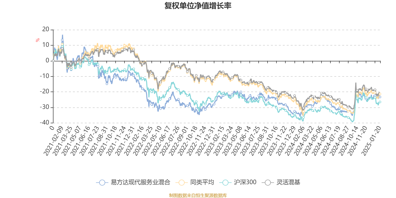 该基金属于灵活配置型基金。截至1月20日,单位净值为1.799元。基金经理是王元春,目前管理5只基金近一年均为正收益。其中,截至1月20日,易方达现代服务业混合近一年复权单位净值增长率最高,达16.74%;易方达瑞恒混合最低,为3.81%。