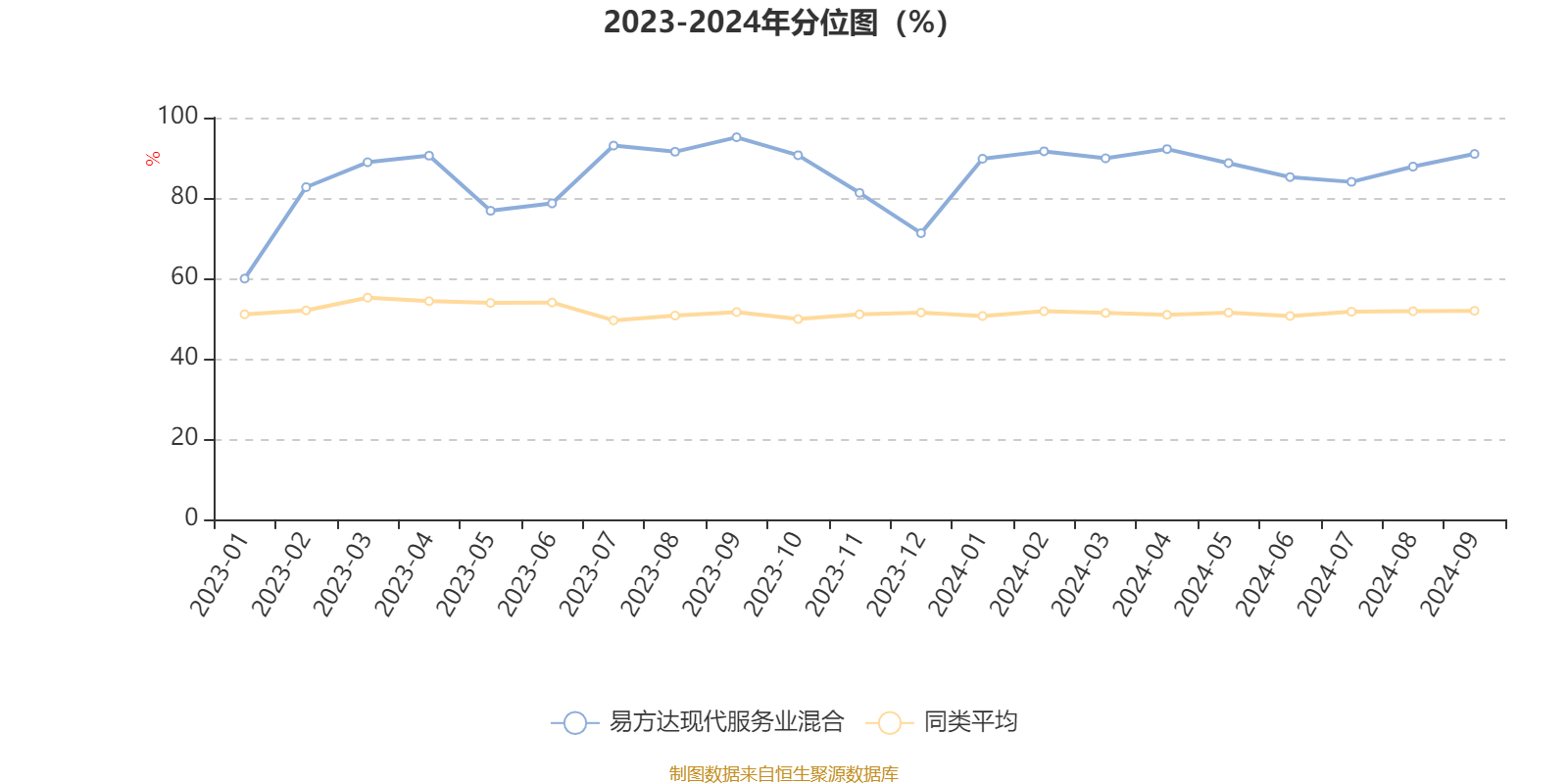 通过所选区间该基金净值增长率分位图,可以观察该基金与同类基金业绩比较情况。图为坐标原点到区间内某时点的净值增长率在同类基金中的分位数。