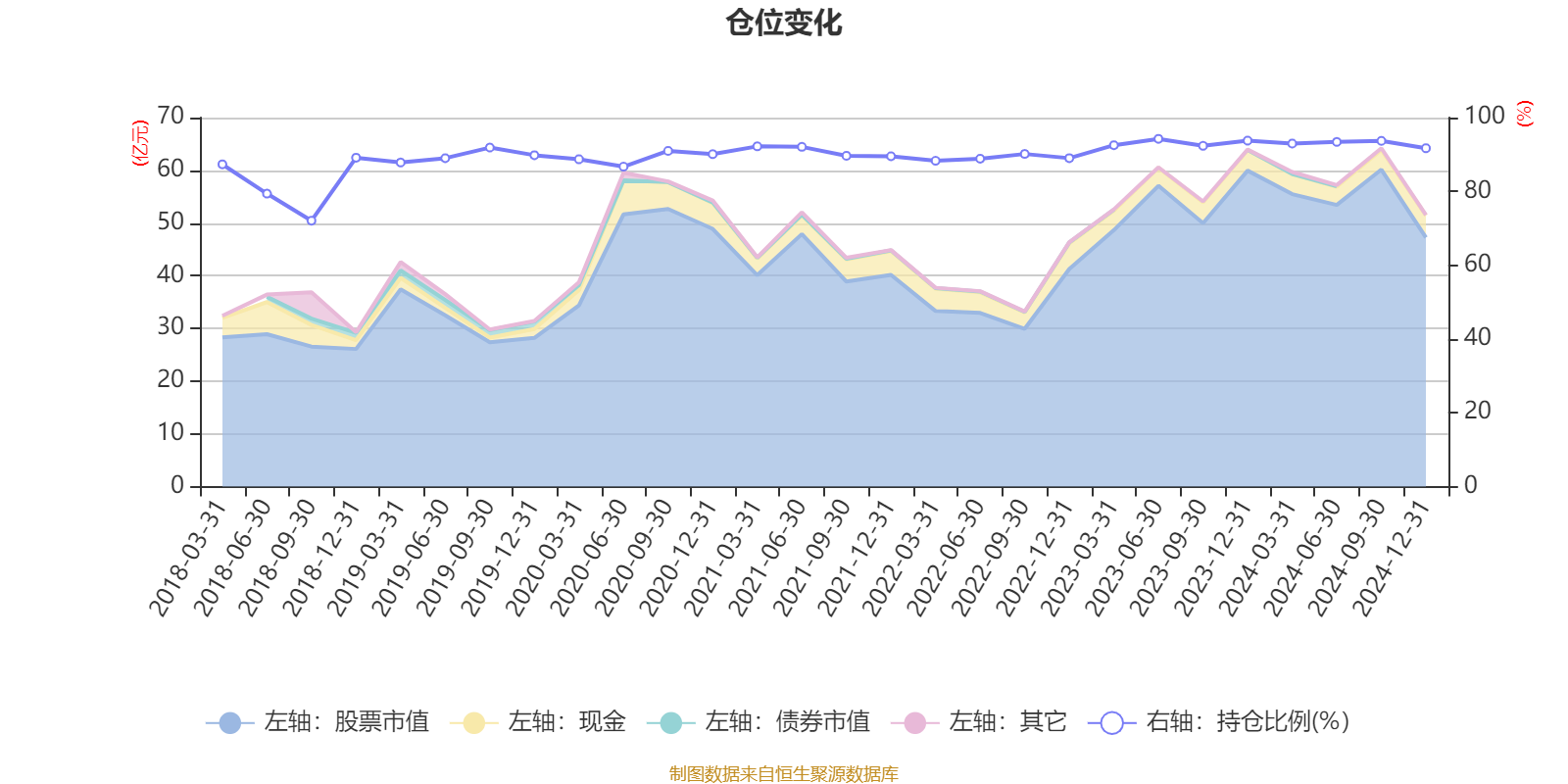 据定期报告数据统计,近三年平均股票仓位为91.75%,同类平均为86.48%。2023年上半年末基金达到94.24%的最高仓位,2018年三季度末最低,为72.06%。
