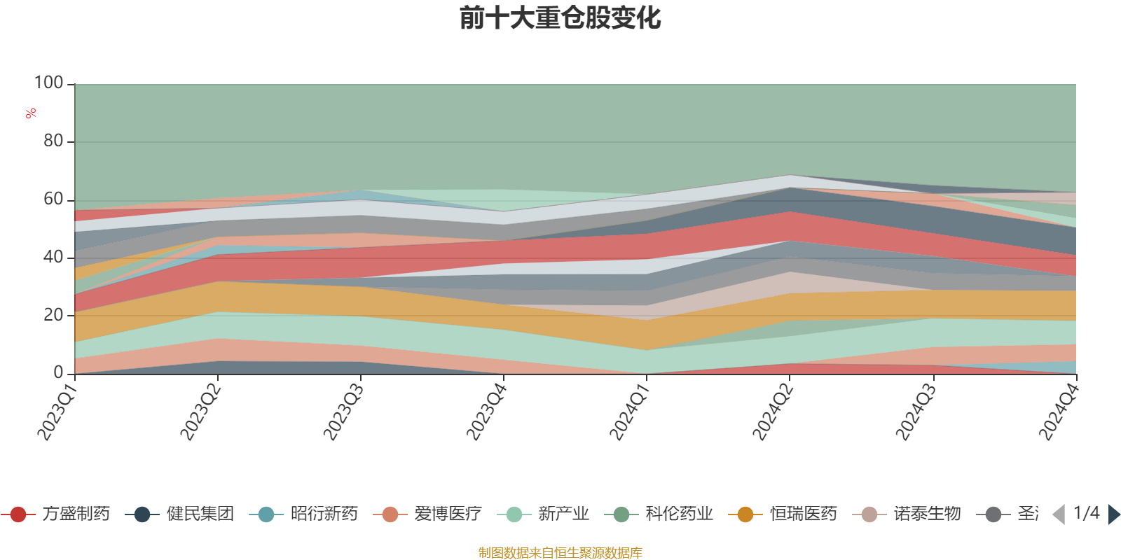 该基金持股集中度较高。截至2024年四季度末,基金十大重仓股分别是恒瑞医药、泰格医药、新产业、惠泰医疗、爱博医疗、圣湘生物、诺思格、信立泰、昭衍新药、热景生物。