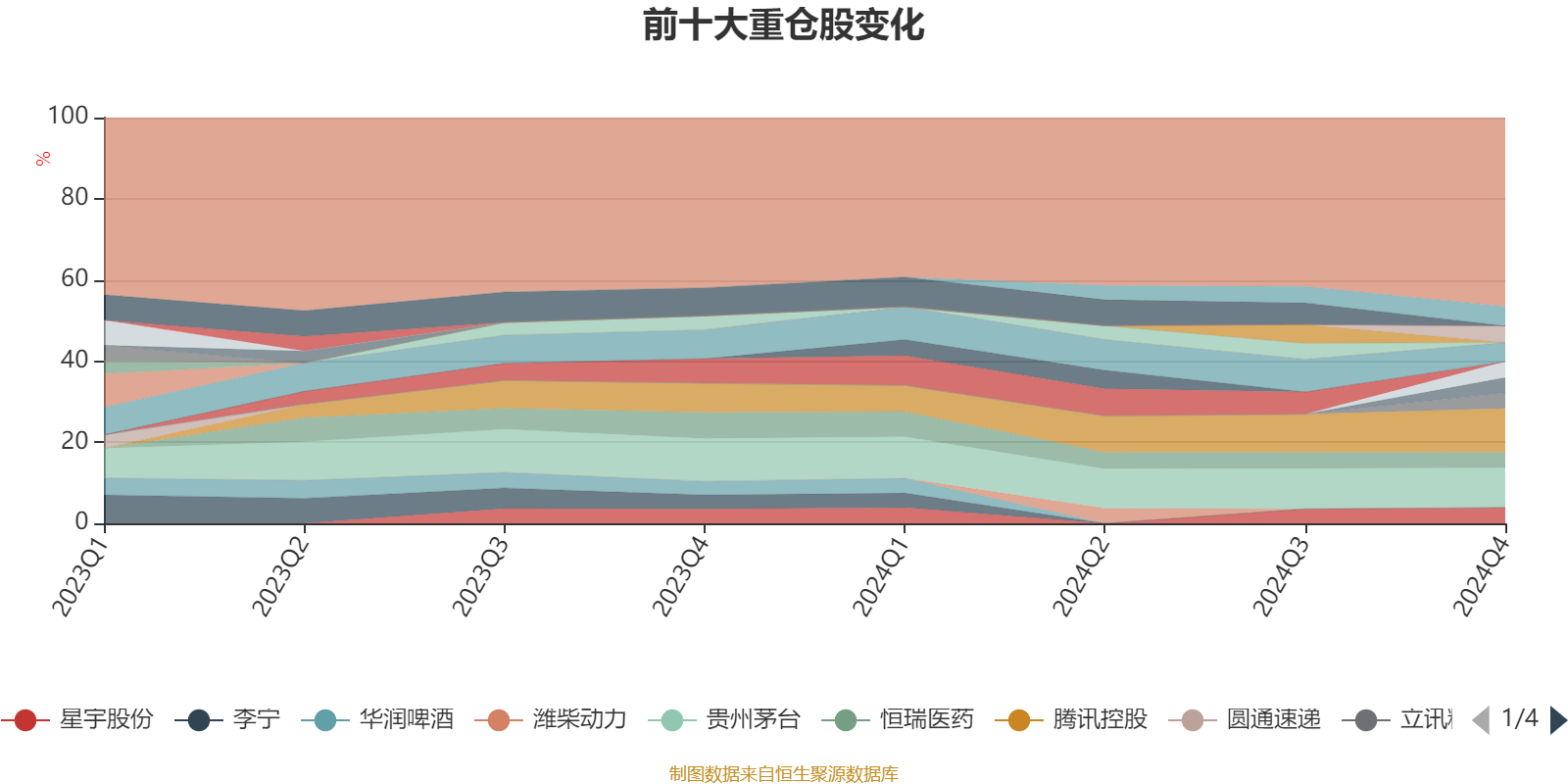 该基金持股集中度较高。截至2024年四季度末,基金十大重仓股分别是腾讯控股、贵州茅台、思源电气、五粮液、阿里巴巴-W、格力电器、恒瑞医药、星宇股份、巨星科技、立讯精密。