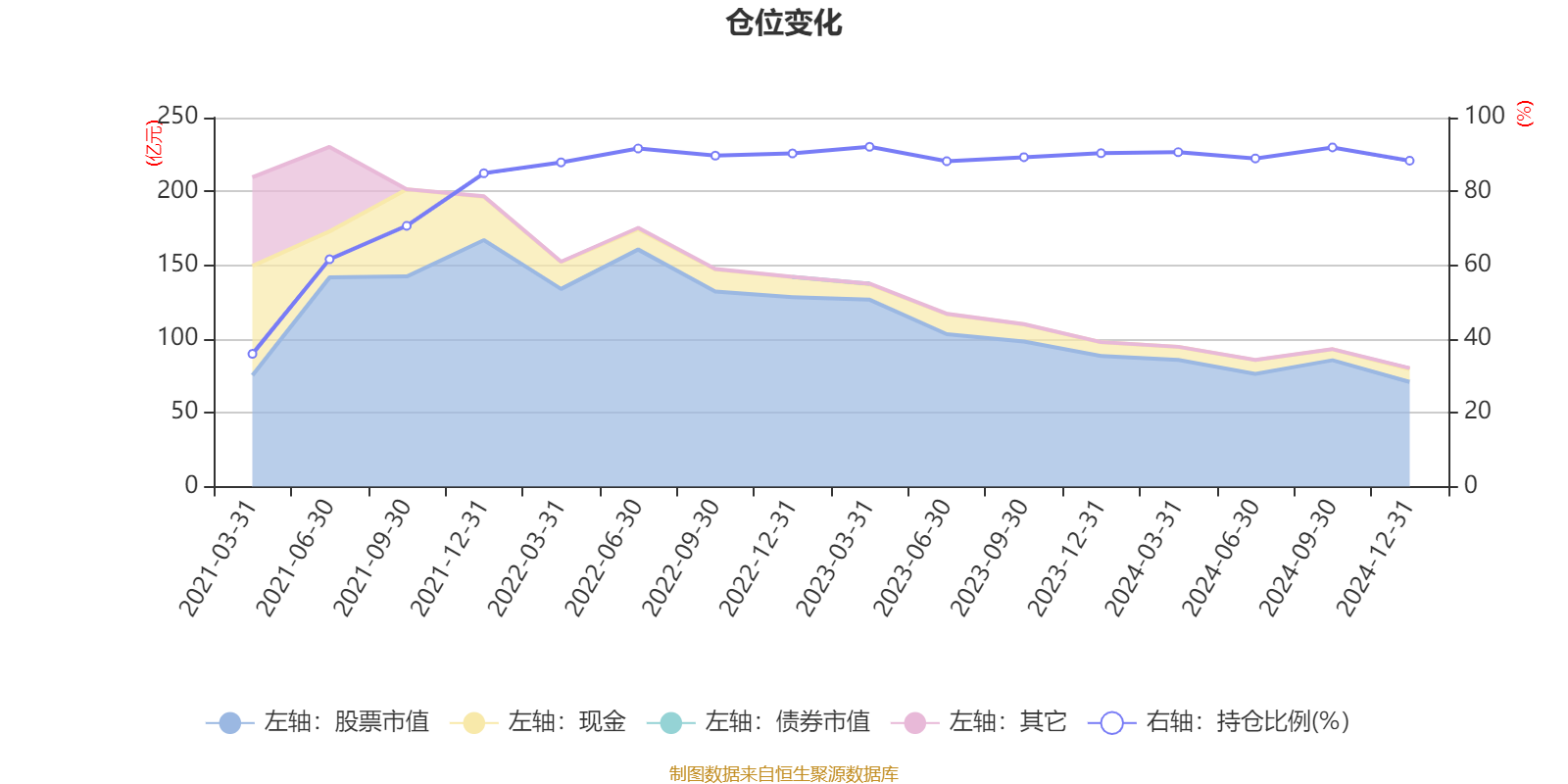 据定期报告数据统计,近三年平均股票仓位为89.93%,同类平均为85.26%。2023年一季度末基金达到92.08%的最高仓位,2021年一季度末最低,为35.96%。